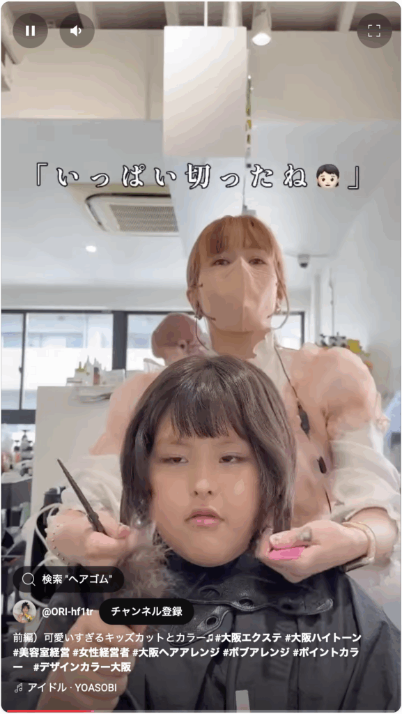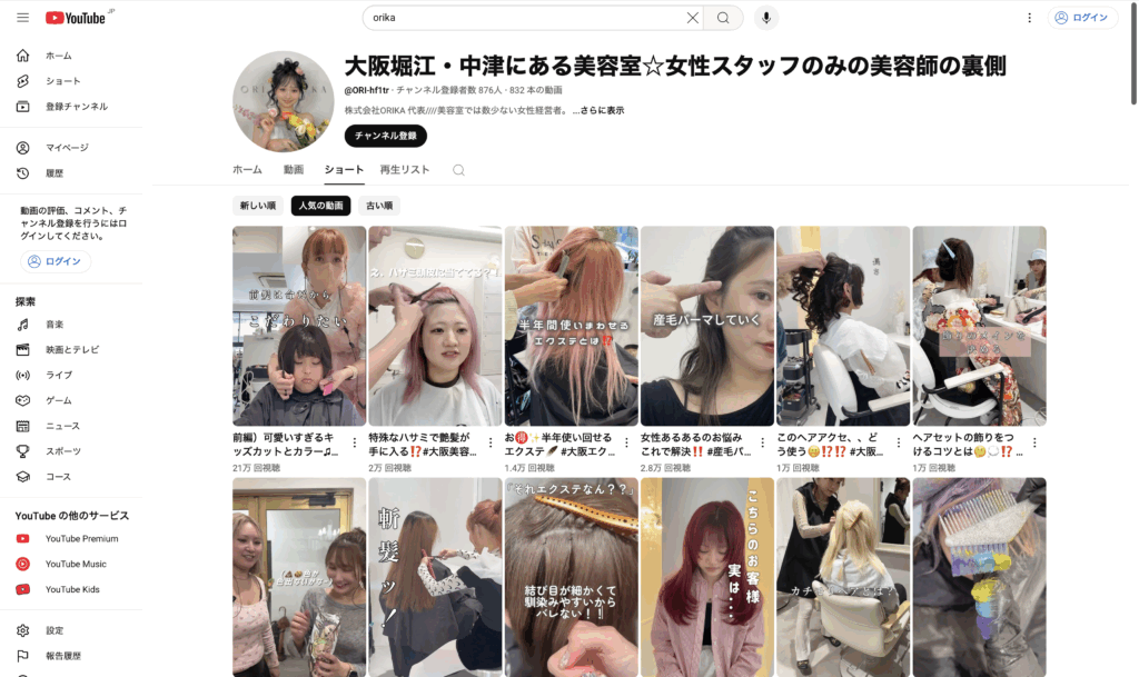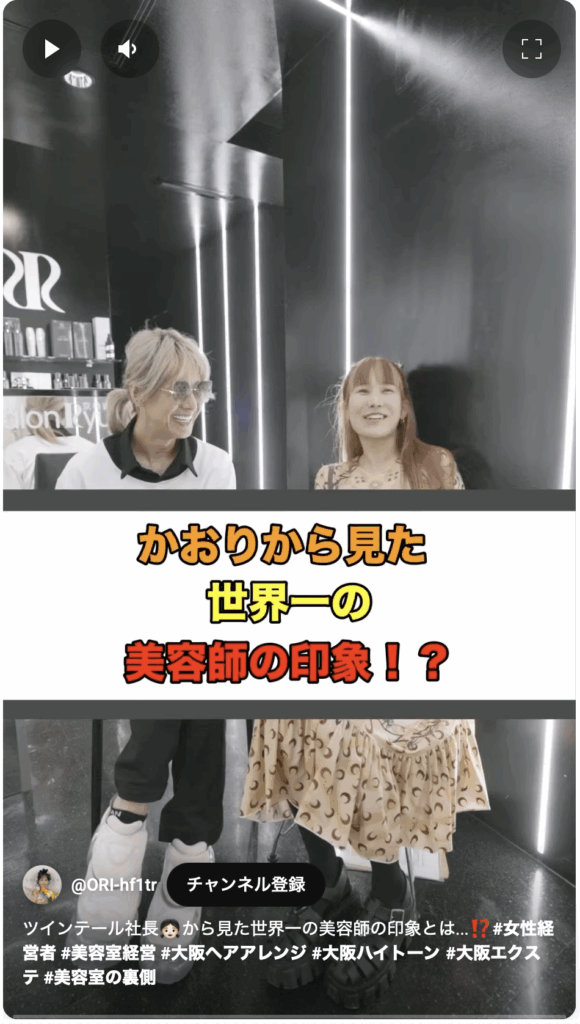 大阪にある美容院ORIKAのSNSチャンネル(主にyoutubeのショート動画とロング動画)の企画〜編集まで約1年担当しました。